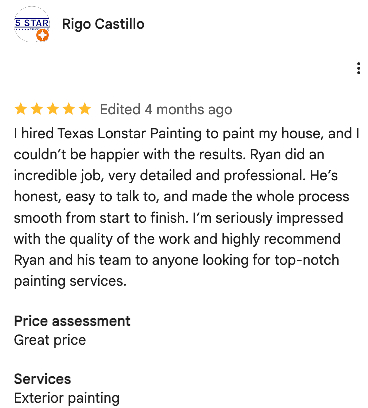 Texas Lonestar Painting transformed our living room with precision and care. Their team was punctual, professional, and the finish exceeded our expectations.